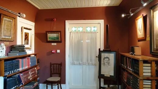 Evin giriş bölümü olan salonda Tevfik Fikret, dinlenme odası bölümünde ise Edebiyat’ı Cedide grubunun hatıraları ile karşılaşacaksınız. Büyük Şair Abdülhak Hamit’in de şahsi eşyaları burada sergilenmekte. Tevfik Fikret’in yatak odasında ise ölümünden hemen sonra ünlü ressam Mihri Müşfik Hanım tarafından çıkartılan Tevfik Fikret yüz maskesi bulunuyor.